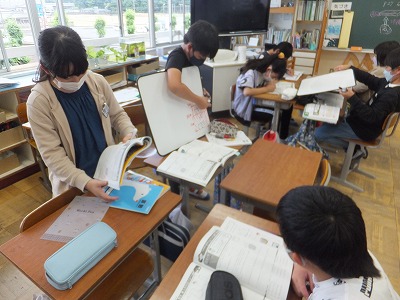 今日は、2組が拡大図と縮図のかき方について学習しました。