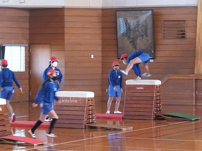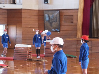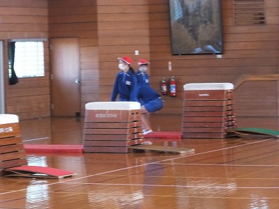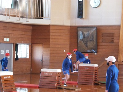グランドコンディションが良くなかったので、体育館でリレーをしました。