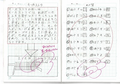 4年生のノートです。2冊目を提出してくれました。オーケストラとは・・・・。