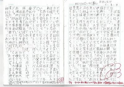 4年生のノートです。長文の日記が書いてあります。「最強の運を求めて」というタイトルがいいですね。