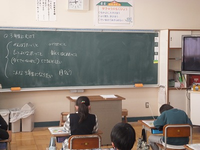 ワークシートに書いたあと、黒板に振り返りを書きました。