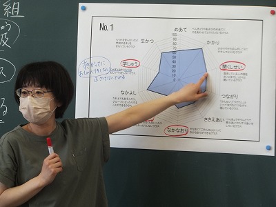 ワークシートに書いたあと、黒板に振り返りを書きました。