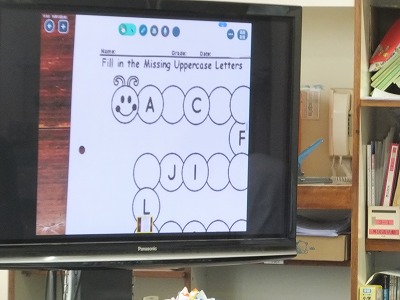 まずは、ワークシートに英語で名前を書きましょう。