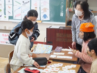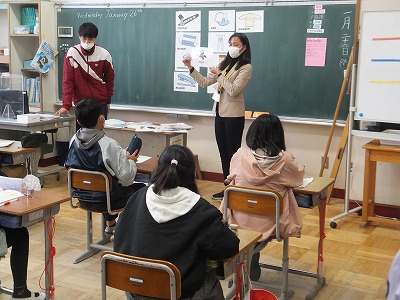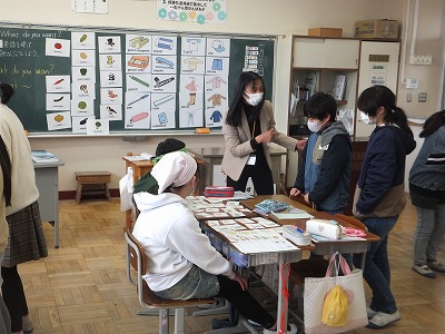 ALTが見せた物の名前の言い方を発音しています。子供たちは結構覚えています。