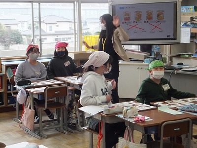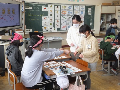 先生やALTにサポートしてもらいながら、英語で買い物をしています。