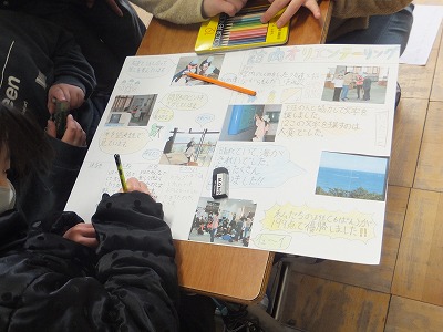 宿泊学習を振り返り、楽しかった思い出を掲示物としてまとめています。