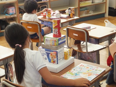 今日も、「はことはこをくみあわせて」思い思いの物を作りました。
