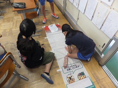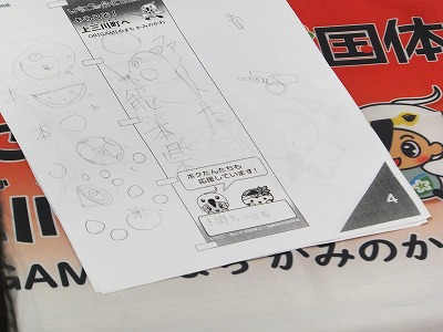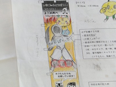 図工の時間に国体ののぼり旗を描いている子がいました。