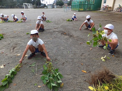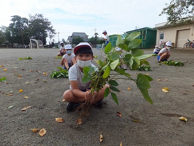 農園に植えた枝豆を収穫しました。