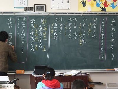 授業の後半は、漢字の音読みと訓読みについて学習しました。