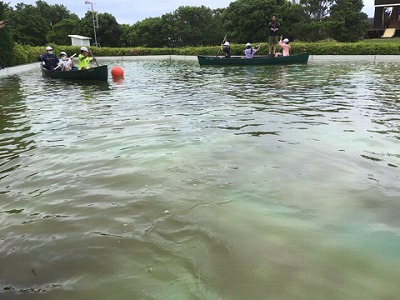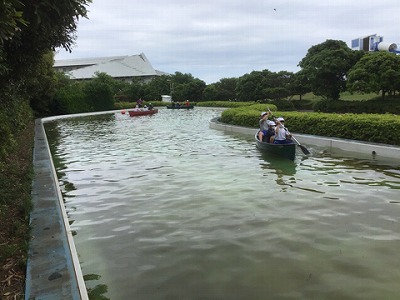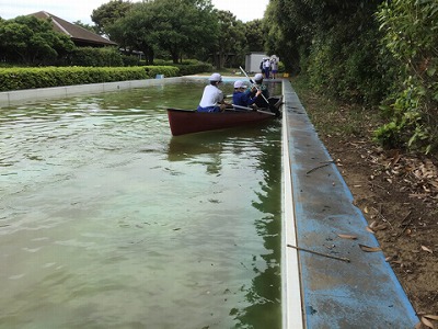 みんなで協力して漕いでいます。でも、なかなかまっすぐ進みません。