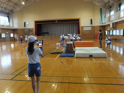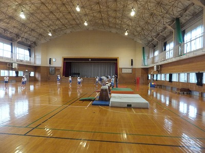 グランドコンディションが良くなかったので、体育館でリレーをしました。