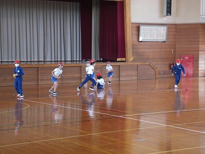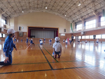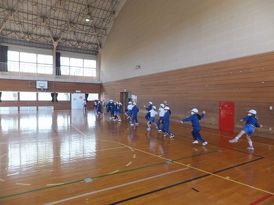 グランドコンディションが良くなかったので、体育館でリレーをしました。