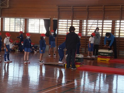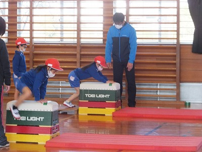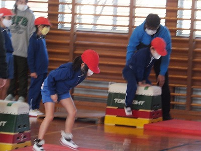 今日は、跳び箱をやりました。手の着く位置確認しました。