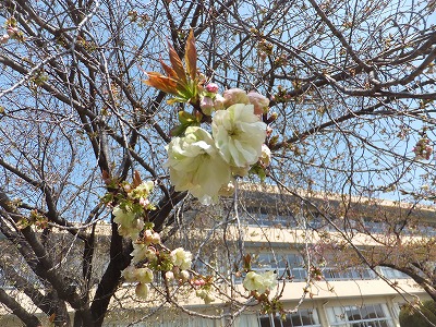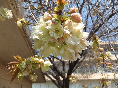きれいな八重桜です。まだまだ満開までは数日かかりそうです。