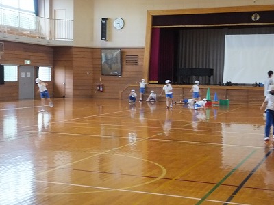 投げることよりもキャッチの方が難しいですが、上手にキャッチできている子が多かったです。