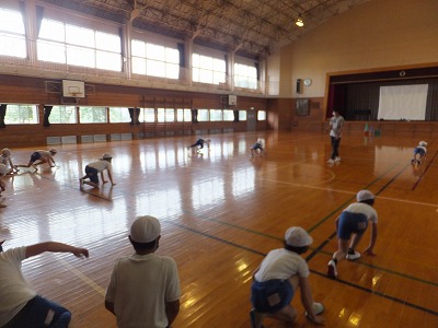 体育館でボール遊びをしました。今日は、ボールを投げたり、キャッチしたりする運動です。