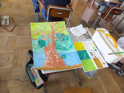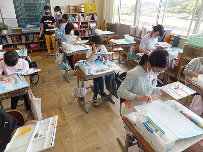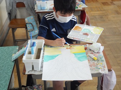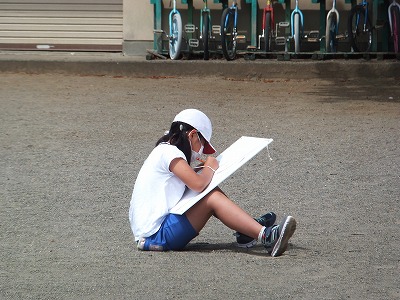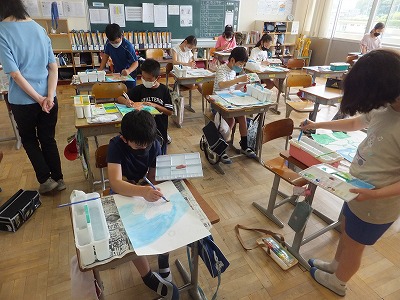 外でのスケッチが終わった子は、色塗りです。結構進んでいますね。