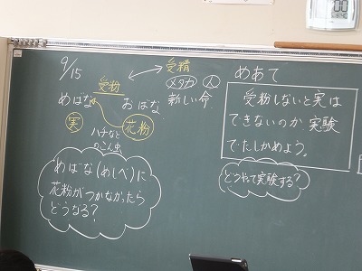 実ができるためには、受粉が必要条件なのかを調べる実験をします。