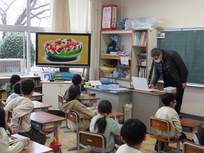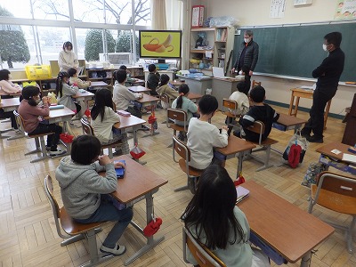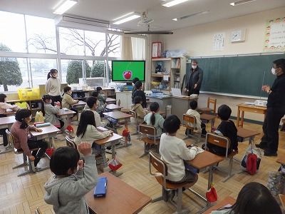 ALTが形や色、大きさを英語で言います。子供たちは何について言っているか当てます。