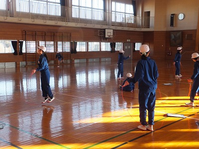 今日はなわとび大会です。順番を待つ間、一生懸命練習しています。