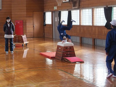 今日の体育は、台上前転をやりました。