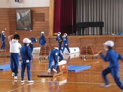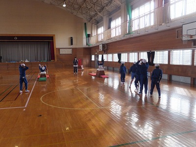 グランドコンディションが良くなかったので、体育館でリレーをしました。