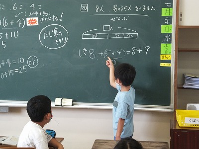 ワークシートに書いたあと、黒板に振り返りを書きました。