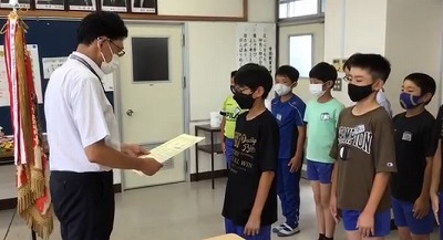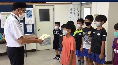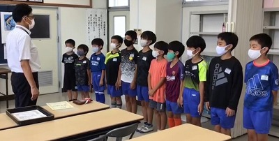 サッカー部の表彰です。