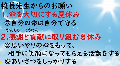 校長先生からのお願いです。