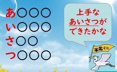 あかるく いつでも さきに つたえる あいさつができるといいですね。