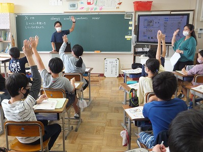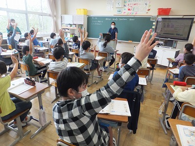 外国語の時間には、どのくらいお手伝いをしているかの質問とその答え方について学習しました。