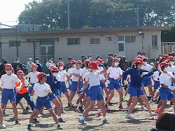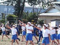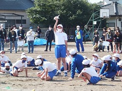 高学年団体種目前のパフォーマンス