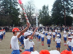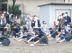 運動会の成功を祈って、気合を入れる6年生