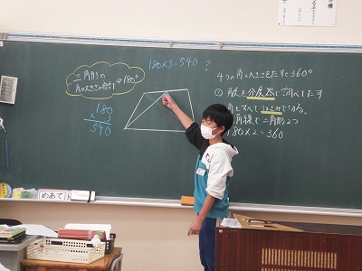 三角形の内角の和が180度だから、三角形が二つなら・・・・・。