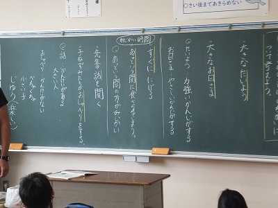 ワークシートに書いたあと、黒板に振り返りを書きました。