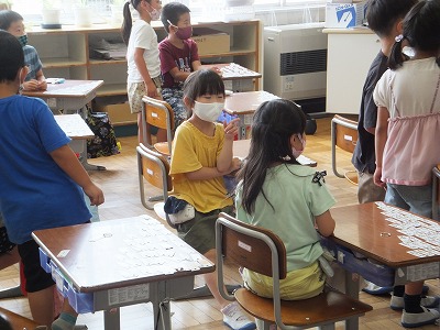 今日は計算カードを使って、ひき算の練習です。