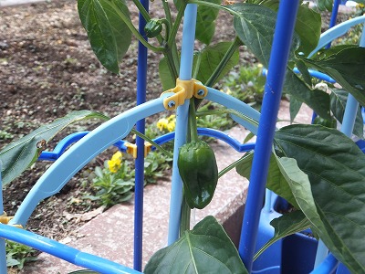 トマトだけでなく、ピーマンも実をつけました。