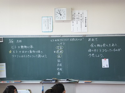 ワークシートに書いたあと、黒板に振り返りを書きました。