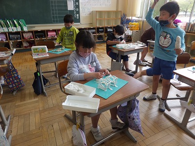 図工の時間に、粘土をつかって造形遊びをしました。