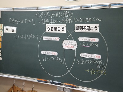 保護者の皆様にも、せっかくの機会ですので、学年部会で時間を取って話していただきました。ご家庭でも、ネットの使用について、お子さんと十分に話し合っていただければと思います。