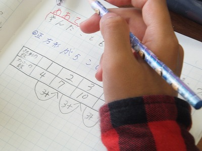表を使って変化の様子を調べ、きまりを見つけようとしています。