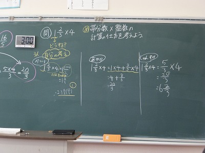 帯分数×整数の計算の仕方を既習事項をもとに考えました。