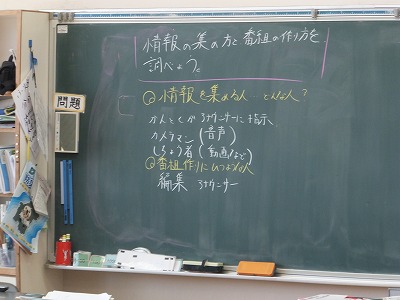 社会科の授業で、情報の集め方やニュース番組の作り方について学習しました。