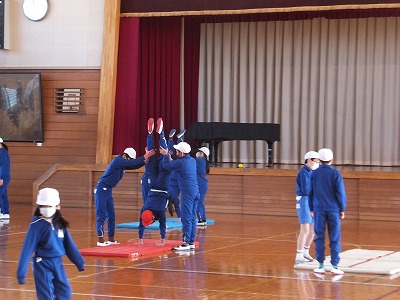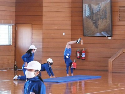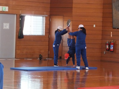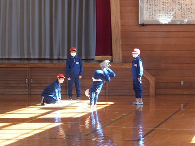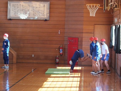 グランドコンディションが良くなかったので、体育館でリレーをしました。