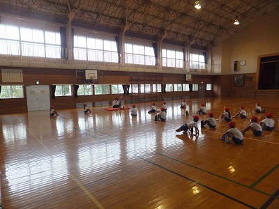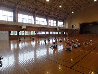 グランドコンディションが良くなかったので、体育館でリレーをしました。
