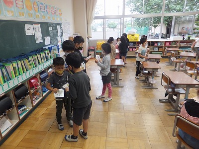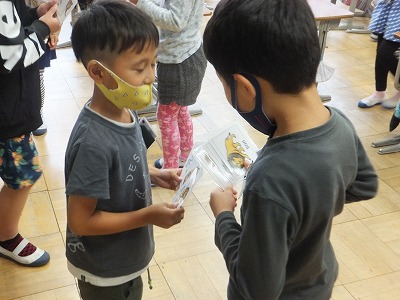 外国語の時間は、同じ動物のカードを集めるゲームをしました。