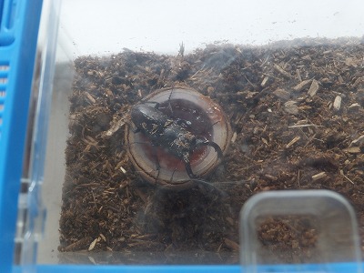 既に教室では、学校の自然林にいたクワガタを飼っています。