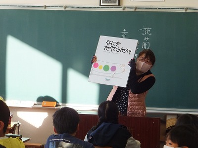 今日は、図書ボランティアの方に読み聞かせをしていただきました。