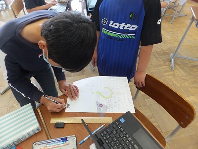 今日は、2組が拡大図と縮図のかき方について学習しました。